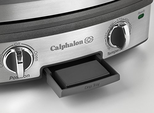 Add even more versatility to your kitchen with the Calphalon 5 in 1 Removable Plate Grill. Reversible grill/griddle plates let you cook five different ways, so you can prepare eggs, pancakes and sausage for breakfast, a Panini for lunch, and grill chicken or steak for dinner. Open it flat to convert to a full griddle or full grill, or close it to use as a contact grill or Panini press. Plus, the high-performance Calphalon nonstick plates and removable drip tray can go right into the dishwasher for easy cleanup.Read more about Calphalon 1832450 on the main market. Please click button bellow to visit Calphalon 1832450 market.