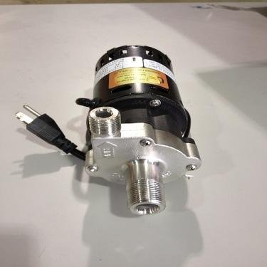 Looking for an alternative to expensive March pumps? Tired of stripping out threads on the Plastic pump heads. Chugger is the solution you have been looking for! Chugger is the first pump Made specificly by brewers for brewers. These pumps are comparable to the popular March pumps in virtually every way except feature a 25% more powerful motor (1/20HP instead of 1/25hp) and of course Stainless steel heads. Another benefit is that the Chugger heads are interchangable with existing March brand pump motors. This pump is comparable to the March Model 809-SS-HS-C The larger 3/4" center inlet offers an increased flow rate over inline models.