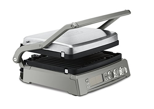 Six cooking options in one: contact grill, Panini press, full griddle, full grill, half grill/half griddle, top melt