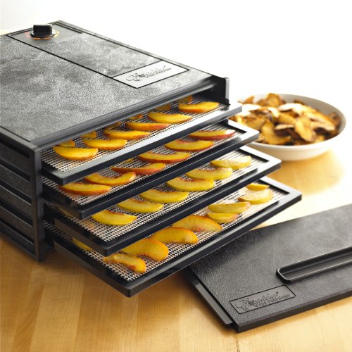 Dehydration is the healthiest, easiest, and most economical way to preserve foods. Load the trays and set the temperature, the Excalibur dries the contents of all trays evenly so everything's done at once. Dehydration concentrates the natural flavor, sweetness, and aromas of your food. Leaving you with a flavor that's far healthier than high-fat snacks and high-sugar candies that are filled with chemical preservatives. The Excalibur 5-Tray Small Garden dehydrator provides 8 square feet of drying space, and is perfect for families with small gardens. Includes flexible polyscreen tray inserts to prevent foods from sticking to trays, 5-Inch fan, built in on/off switch, and adjustable thermostat.