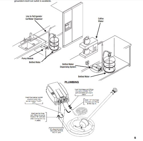 The Bottle Water System Plus is designed for convenience and portability. When the unit is plugged into an AC power source and a water bottle is connected to the system, fresh water is available for use with coffee/tea machines, water dispensers, refrigerators, ice makers, or any application where potable water is needed. The unit shuts off when water in bottled is depleted and restarts automatically when the empty bottle is replaced with a full bottle.