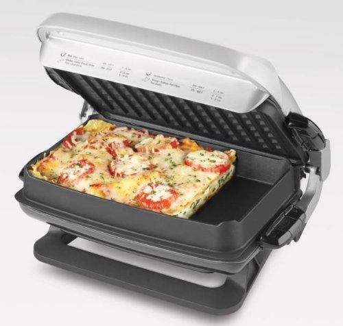 From the Manufacturer The George Foreman Evolve Grill As the most versatile grill ever from George Foreman, the Evolve Grill lets you cook up to 8 different ways, all with one compact appliance. You start with a 4-plate starter set, then build your collection with up to 6 additional plates available for purchase. It’s like having an entire kitchen’s worth of versatility with just your grill. Includes Grill plates and deep-dish bake pan. 2 Grill Plates Includes cross-hatch top plate for steakhouse results right at home 1 Deep-Dish Bake Pan Lets you bake casseroles, lasagna and even brownies directly on your grill 1 Mini-Burger Insert Make up to 6 mini-burgers or sliders in a snap for your next party Healthy Adjustable slope for draining fat. Like all of our grills, the Evolve Grill is designed to make cooking healthier easy. The adjustable slope lets you angle the cooking surface so fat and unwanted grease drain away from food as you cook. Plus, our George T...