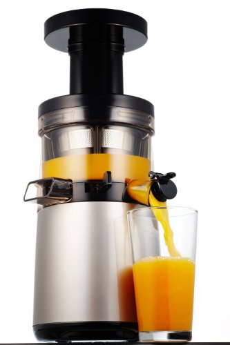 The Hurom HH Elite Slow Juicer is a very advanced and efficient juice extractor with its new twin-winged auger and advanced Auto-Pulp feature. The new and improved system comprised of the Slow Squeezing Technology (SST) makes the HH Elite even easier to use and clean than previous Hurom models. The new Hurom yields more juice with less waste with its improved twin-winged auger that masticates and squeezes food more evenly and thoroughly than previous Hurom models. The new-generation SST, a world-recognized breakthrough, is the incomparable Slow Squeezing Technology. The redesigned chamber, strainers, and spinning brush are simplified for convenient assembly, effortless cleaning, and easy maintenance. In addition, the silicone parts are black to avoid stains, and the hopper can now be used in two positions. Set the lever to JUICE and get the most juice in an efficient way. With this Auto-Pulp feature, natural juice will be extracted and the pulp will be pushed out. For self-cleaning, s...