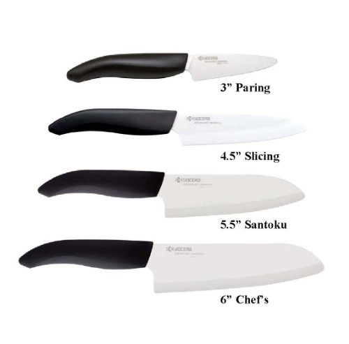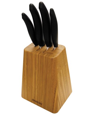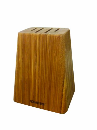 After such a heavy demand for a clever ceramic knife set, kyocera has created the perfect collection for any cooking enthusiast. this handsome bamboo knife block securely contains 4 essential kyocera advanced ceramic knife sizes: 3-Inch paring, 4.5-Inch utility, 5.5-Inch santoku and 6-Inch chef's knives. it's an attractive, compact design to safely store your favorite kyocera knives. the small footprint is ideal for kitchens with limited space, solving a common storage problem and keeping the knives easily accessible. block made of solid bamboo, a durable and renewable resource.