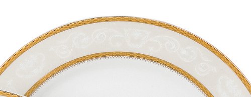 Includes serving pieces: 14-inch platter, 8-1/2-inch serving bowl, salt and pepper, teapot, creamer and sugar bowl