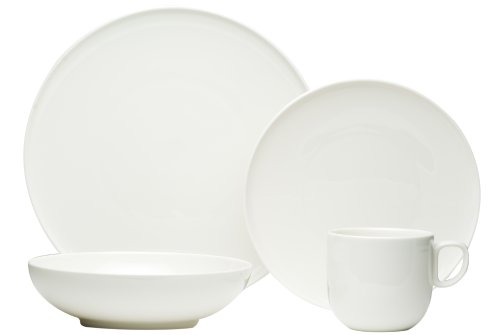 Everytime White 24-piece Dinnerware Set gives you everything you need for a setting of 6 Casual dinnerware is made of super strong Hotel porcelain. Dining set includes six (6) coupe dinner plates, six (6) coupe salad plates, six (6) coupe soup/cereal bowls, and six (6) mugs