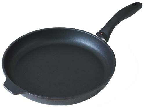 Swiss Diamond's largest fry pan, the 32 cm (12.5”) skillet can accommodate pork chops and other large cuts of meat. The diamond-reinforced coating browns and sears like stainless steel with no-hassle clean-up when the meal is done. Recommended by the American Vegetarian Association (AVA) for vegan and vegetarian recipes, and designed for cooking without added oils or fats, Swiss Diamond can help you reach your health and weight loss goals. A matching tempered glass lid with adjustable steam vent is also available. Used by discerning home chefs around the world, Swiss Diamond’s PFOA-free cookware features unsurpassed nonstick performance for healthy cooking and easy clean-up. The patented nonstick coating, reinforced with real diamond particles, allows oil-free cooking and cleans up with just warm soapy water. No more scrubbing and soaking! Swiss Diamond’s patented nonstick coating is reinforced with real diamonds for excellent durability and resilience. Why diamonds? Three reason...