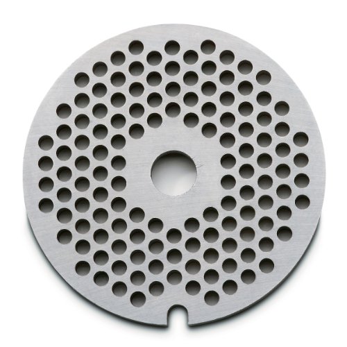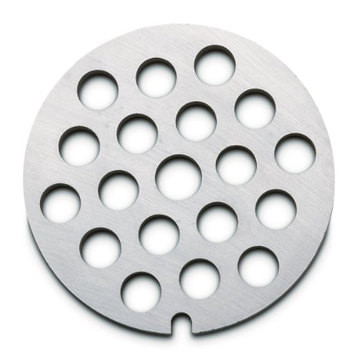 Fresh ground sausages, pates, meats for chili, and fish for soups can all be prepared at home with this professional quality meat grinder. Solid and sturdy, the beautiful brushed stainless-steel housing should last a lifetime. An extra-large, die-cast hopper holds a generous amount of cubed or sliced meat, which is then fed into the grinder tube with a long plastic pusher. Three metal cutting plates are included: fine, for spreads, pates, hamburger, and baby food; medium, for soup-related textures; and coarse, for ground meat used in chili. Fish and vegetables can also be ground with the appliance. Stored inside the pusher are two sausage attachments, which allow meats and spices to be combined for thin or plump sausages (recipes for Cajun, Italian, venison and other sausages are included in the user guide). Covered by a five-year warranty, the 450-watt motor works effortlessly and operates with a simple on/off/reverse switch. All parts should be washed by hand.