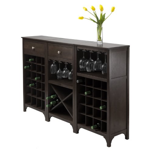 Ancona Modular Wine Cabinet with One Drawer, Glass Rack, X Shelf made from both solid and composite wood in Espresso Finish.Read more about Winsome 92745 on the main market. Please click button bellow to visit Winsome 92745 market.