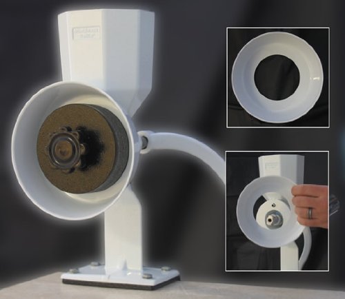 Limited Lifetime Warranty Burr grinder works with wet/oily grains; legumes, coffee, garbanzos, seeds, nuts, etc. Powder-coated for easy cleanup Large octagon hopper fills easily and holds more than 1 quart World's only patented dual clamp secures to surfaces up to 2" thick, will not slip like other mills.