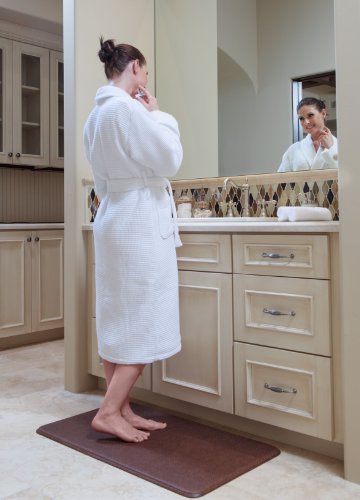Sink your feet into the Imprint® Cumulus9™ Comfort Mat with its proprietary Multi-Core Technology. Feel how it conforms to the shape of your feet and supports your arches for relief of back, leg and foot discomfort. The advantage is its proprietary multilayer cushioning system. The soft, upper layer luxuriously cushions your feet while the firm, lower layer provides soothing support. You’ll want an Imprint® Comfort Mat everywhere you work and stand – kitchen, laundry, bathroom, garage, workshop and more!