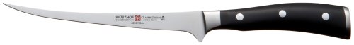 Designed in the U.S. by some of the best fishing experts in the country. The Wusthof Classic Ikon 7inch fillet will easily clean and bone your favorite catch. The fillet knife comes with a leather sheath so it can be used on the lake as well as the kitchen. Located in The Cutlery Capital of the World, Solingen Germany, the Wusthof factory history goes back as far as 1814 when the company was listed with the Duchy of Berg. To this day, the company remains family owned. Throughout it’s history, Wusthof has focused almost solely on the manufacturing of forged knives for the professional chef and home cooking enthusiast. A considerable number of separate manufacturing steps are required to complete each precision forged knife. Each step is performed to exacting standards by skilled German workers aided by the most modern, computer guided equipment. Some of our precise steps are done robotically and utilize the same machinery that are used to produce very well known Swiss Watches. It ...