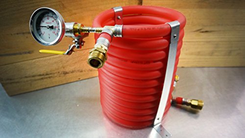 The ExChilerator uses Pex tubing and a 10 guage non metallic wire woven in a co-helical manner around inner copper tubing. The co-helical wrap accomplishes two things. 1. Keeps inner tube centered in pex so cooling water bath is 360 degrees. 2. Helps swirl cooling water across all surfaces for maximum cooling efficiency. The Exchilerator is made of materials made for potable water, your cooling waste water can be used again with no chemical or garden hose taste. No low budget hose clamps, all stainless colars and lead free fittings. The Exchilerator will work with a pump or gravity and is easy to clean, just run your favorite brewery cleanser through it or flush with hot water from hot liquor tank as with any chiller all liquids should be blown out with co before storing. Inner tubing is coiled inside the outer on a machine that does not create any kinks or nooks were trub and hop mater can gather unlike the convoluted and plate designs. Unlike other chillers these models come ready to...