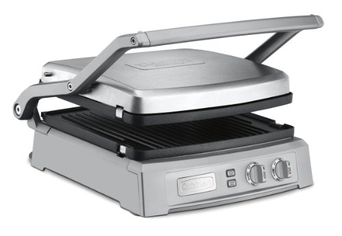 Cuisinart GR-150 Griddler Deluxe Take Meals to New Heights The Cuisinart Griddler Deluxe takes grilling to new heights! It offers six enticing cooking options. The reversible grill and griddle plates, combined with dual-zone temperature control, give home chefs complete control. This grill is perfect for making pancakes and eggs for breakfast, panini and open-faced sandwiches for lunch, and burgers or fajitas for dinner. The extra-large grilling surface is ideal for entertaining a crowd or making family meals. The new SearBlast feature locks in the flavor of steaks. With dishwasher-safe accessories, an elegant new look, and 1800 watts of power, deluxe is an understatement. Product Benefits Six Ways to Cook: 240 square inches of cooking surface handle big orders of bacon and eggs, panini sandwiches, seared filets, and sautéed vegetables. Enough Power to Sear: 1800 watts of power and 500°F max plate temperatures let you sear meats, fish, and poultry. The 2-minute SearBlast f...Read more about Cuisinart GR-150 on the main market. Please click button bellow to visit Cuisinart GR-150 market.