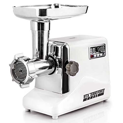 STX TURBOFORCE 3000 SERIES 3 SPEED ELECTRIC MEAT GRINDERView larger STX TURBOFORCE 3000 SERIES 3 SPEED ELECTRIC MEAT GRINDER The STX TURBOFORCE 3000 Series Electric Meat Grinder is the INDUSTRY LEADER in quality electric meat grinders featuring 3000 Watts of Peak Output Power (Maximum Locked Motor Wattage), 600 Watts of Power under no load and between 800 Watts & 1200 Watts of Power under load depending on the meat you are grinding. Over "80,000" of our STX grinders have been sold in the past 7 years with a 99.8% Customer Satisfaction Rating SETTING THE STANDARD for EXCELLENCE. CONTENTS Whether you are a just getting started or a seasoned food processor, this STX Grinder provides you with the high quality accessories that you will need. It comes standard with a Size #12 Grinding Head (NOT a smaller Size #5 or Size #8 like most kitchen grinders) manufactured of 100% Polished Food Grade Cast Aluminum (Not Coated), 3 Stainless Steel Cutting Blades, 3 Sizes of Tempered/Hardened Steel G...