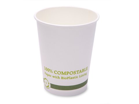 12 Oz Recycled Paper, PLA-Lined Hot Cup (Sleeve of 200) These paper cups contain PLA (polylactic acid) bioplastic lining from NatureWorks. This PLA is derived from corn grown in the USA. These cups can withstand temperatures of up to 200 degrees F.