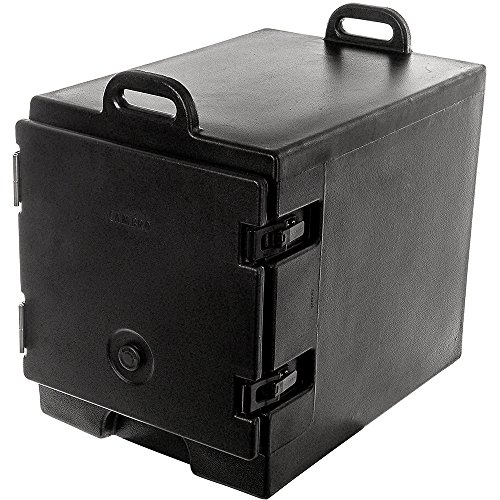 This insulated food pan carrier cart is used to holds multiple pans of hot or cold food at safe temperatures for hours. Constructed with seamless polyethylene material with thick foam insulation. This cart is rugged and dependable front-loading food pan carrier. It has a plastic latches to secure contents, stack for transporting and storing and molded-in handles for easy carrying and handling. Airtight removable gasket provides a secure seal. Can hold four 2-1/2-inch deep, three 4-inch deep, two 6-inch deep and one 8-inch deep full-size food pans. Available in black color. Interior measures 21-inch length by 13-1/4-inch width by 14-inch height. Exterior measures 24-1/2-inch length by 16-3/4-inch width by 22-3/8-inch height.
