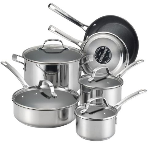 The ideal pots and pans are indispensable for the home cook seeking balance between flavor and nutrition. This Circulon Genesis Stainless Steel Nonstick 10-Piece Cookware Set fuses the healthy benefits of nonstick cooking with the classic style of stainless steel. The impact-bonded aluminum bases provide even, quick heating and are suitable for all stovetops, including induction. The chic, contemporary stainless steel exteriors provide stove-to-oven-to-table performance and are easy to clean. Interiors feature the unique TOTAL Food Release System that combines PFOA-free DuPont Autograph nonstick with raised circles to reduce abrasion even from metal cooking utensils. Whether whisking a light, healthy sauce in one of the saucepans or preparing a vegetable frittata in one of the skillets, this long-lasting nonstick cookware resists scratching, staining and chipping, with exceptional food release. Use the stockpot to simmer a big batch of nutritious lentil soup and easily move it around t...