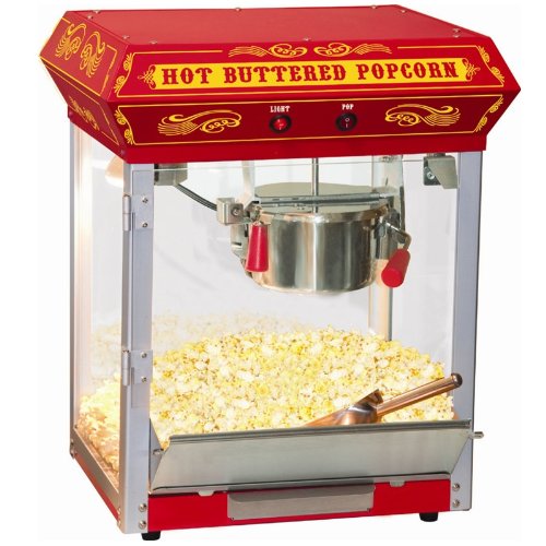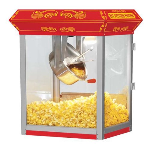 There's nothing in the world like the smell and taste of fresh, theater-style hot buttered popcorn. The FunTime Carnival-Style Popcorn Machine will be the hit of every party. It's a great way to entertain your friends and family, while making some of the best tasting popcorn imaginable. This beautiful antique style popcorn machine brings back the fun feel of yesteryear, back to a time when you could buy a bag of hot buttery popcorn for only 5 cents. The FT421CR is an independent table top / bar style unit. Safety tempered glass side panels and metal construction makes this a very durable and safe to use machine. Power to the unit is delivered via the 2 Position control switches which controls the Spot Light & Deck Warmer and Kettle Stirrer w/ Kettle Heater. The Flip up lids allow popcorn to pop out of the kettle and for those kernels that come out unpopped they are easily managed with the pull-out kernel catcher located under the warming deck. The FT421CR includes: FT421CR Popcorn Popp...