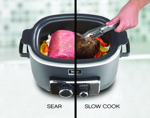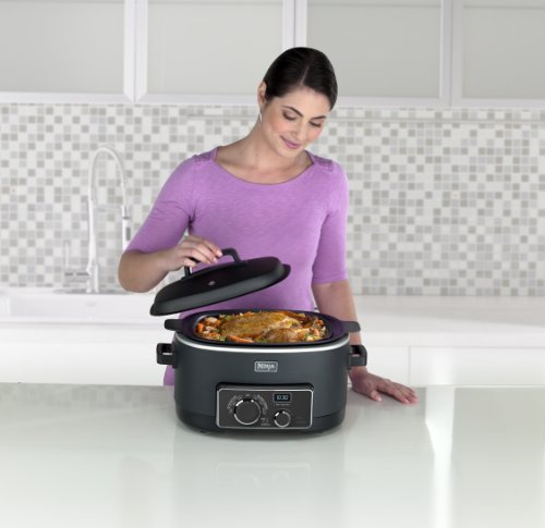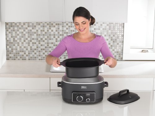 Ninja 3-in-1 Cooking System MC701 Ninja 3-in-1 Cooking System with Triple Fusion Heat surrounds the meal to cook faster, and juicier for more flavorful results. 3 Convenient cooking functions bring 1 pot multi-cooking to a whole new level for endless meal creations that take only minutes to prepare. Steam Roast & Bake, perform Stovetop Cooking, and Searious Slow Cook complete family rewarding meals in the large 6-Qt non-stick cooking pot that can accommodate up to a 6lb chicken or even a 4lb roast. Cook Fast with Less Fat Use the Oven function for Steam Infused Roasting to cook 30% faster with 30% less fat than conventional ovens or for Steam Infused Baking using 50% less fat in your favorite recipe for moister, better tasting results with less calories. Searious Slow Cook with One Pot Convenience Everyone knows that the best tasting meals are made when you brown or sear and then slow cook, locking in all great flavors. Sear using the Ninja 3-in-1 Cooking System’s Stovetop...