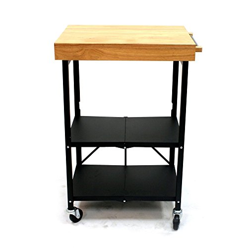 The Origami Kitchen Cart is a versatile kitchen island or side cart, sturdy steel frame with wood top, towel bar on one end, rolls easily so you can move it as desired and.