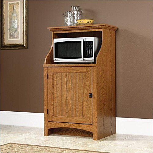 The Gourmet Stand features three great storage spaces. The top acts as a shelf, the opening is a great spot for small kitchen appliances and it also features storage space behind its beaded door panel. The Carolina Oak fits nicely with existing furniture.
