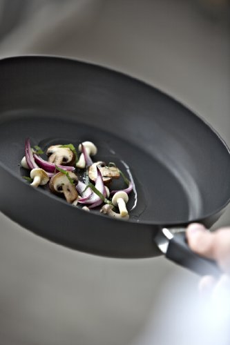 Famous Scandinavian design, traditional, sold craftsmanship and the latest advances in technology combine to set Scanpan Classic Cookware apart. Scanpan Classic is hand cast aluminum under 200 tons of pressure. The optimum thickness of the pan base prevents warping and keeps the pan base perfectly flat, especially important when used with glass top or ceramic ranges. The patented nonstick surface is created by firing a ceramic-titanium particles into the pan and a specially formulated nonstick compound is embedded in the ceramic-titanium surface. The pan thickness and unique ceramic-titanium surface allows for browning, searing and deglazing. Scanpan Classic can be used with high heat for stir frying and is oven safe to 500-degrees. Scanpan Classic is safe to use with metal utensils and comes with a Lifetime Warranty. Made in Denmark. Scanpan Green Tek non-stick surface is PFOA-free in all stages of the manufacturing process. Fry/Omelet Pan 14-inch diameter
