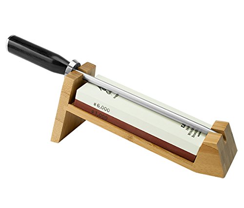 Includes honing steel, 1000/6000 grit whetstone and 16 degree angled stand