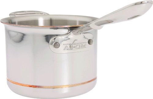 Sauce pan has 5-ply construction with copper center for supreme responsiveness to heat