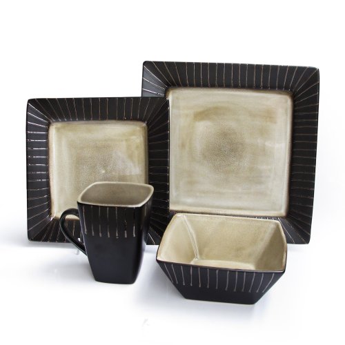Add flair to your table with this sixteen piece dinnerware set from American Atelier. It is made of stoneware and comes with a service for four. This set is dishwasher and microwave safe.