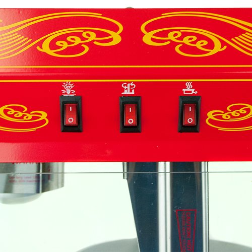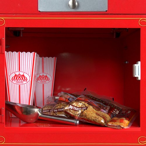 There's nothing in the world like the smell and taste of fresh, theater-style hot buttered popcorn. The FunTime Carnival-Style Popcorn Machine will be the hit of every party. It's a great way to entertain your friends and family, while making some of the best tasting popcorn imaginable. This beautiful antique style popcorn machine brings back the fun feel of yesteryear, back to a time when you could buy a bag of hot buttery popcorn for only 5 cents. The FT860CB can be used with or without the Cart which allows it to be portable or act as an independent table top unit. The cart is mobile thanks to the 19-Inch gold anodized wheels. Safety tempered glass side panels and metal construction makes this a very durable and safe to use machine. Power to the unit is delivered via the 3 Position control switches which controls the Spot Light & Deck Warmer, Kettle Stirrer, and Kettle Heater. The Flip up lids allow popcorn to pop out of the kettle and for those kernels that come out unpopped they a...Read more about Funtime FT860CR on the main market. Please click button bellow to visit Funtime FT860CR market.