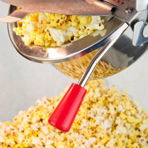 - Carnival-style popcorn popper with storage cart and 8-ounce stainless-steel flip-lid kettle