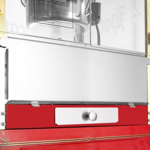 Commercial Grade / Largest Capacity 8 Ounce Kettle / 860-watt. We include 100 FREE bags, measuring cups and a popcorn scoop with every popper. This is our top of the line model and includes etched glass, gold trim and is incredibly quiet when in operation. If you are in the market for a popcorn popper, stop looking. These commercial quality machines feature stainless steel food-zones, easy cleaning stainless steel kettles, an exclusive warming deck, old-maid drawers (for unpopped kernels), tempered glass panels/doors and an industry leading 8 ounce kettle operating on 860-watt. The antique style design evokes memories of early days at the ball games, carnivals, or the movie theater. We have combined the best of both worlds -- not only are you getting today's technology, you get an authentic design with all the conveniences of the modern era. We have sold thousands of these units to churches, schools, businesses, day care centers, varsity/PTA clubs, and more.