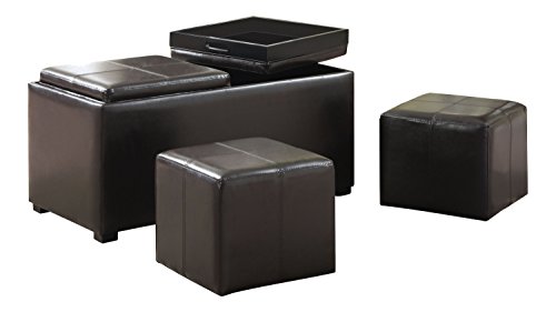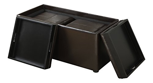 The Avalon 3-Piece Square Storage Ottoman is a great value, giving you three practical ottomans in one compact package-one large rectangular ottoman and two smaller ottomans perfect as small seats or footrests. This unit also comes with two serving trays for easy and convenient food service anywhere in the house.