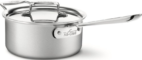 All-Clad Brushed Stainless D5 3-quart Sauce Pan features high straight sides and a smaller surface area, the sauce pan holds heat well and limits evaporation. Because of its shape, this pan is ideal for making sauces, heating liquids, cooking food in liquids and reheating. Can be used with or without its lid to control evaporation. Flared edges for drip-free pouring.