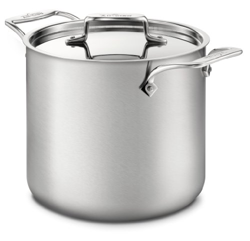 All-Clad Brushed Stainless D5 7-quart stock pot with lid is essential for every kitchen. The stockpot features high sides that slow the evaporation of liquids, providing the ideal design for creating a variety of stocks. The wide bottom of the pan allows for sauteing of ingredients before the addition of liquids for delicious soups and stews. Stockpots are also well-suited for canning, blanching, and preparing food in large quantities.