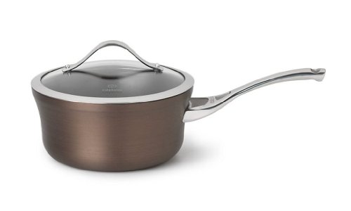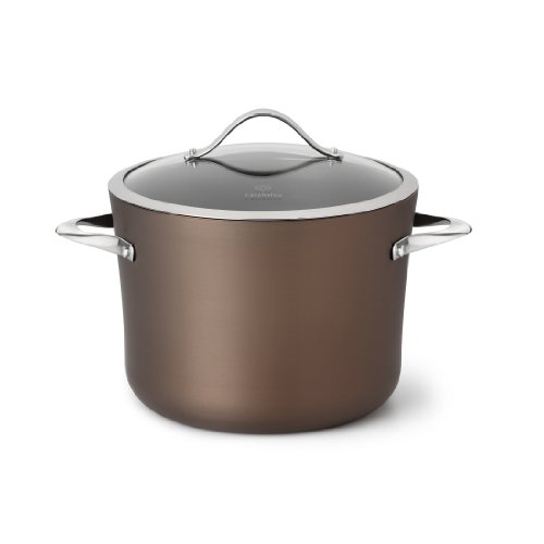 Now dishwasher safe for easy cleanup, Calphalon Contemporary Bronze Anodized Nonstick cookware is created with multi-layer nonstick for ultra durability. The warm and welcoming bronze color is not a surface coating - each pan is made from heavy-gauge, even-heating aluminum that is hard-anodized using an enhanced process to produce this distinctive color that won't chip, crack or peel. This smartly-configured cookware set includes a great selection of classic pans for every culinary need.