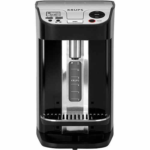 Removable, stainless steel 12-cup water tank; front facing water window; angeled control; immediate flow stop