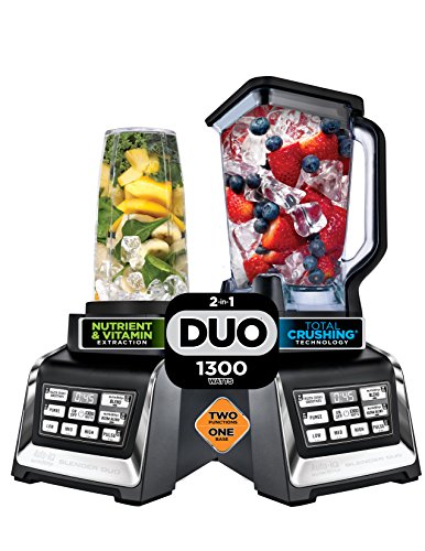 The Nutri Ninja | Ninja Blender Duo with Auto-iQ takes the guesswork out of drink making! Auto-iQ Technology features intelligent programs that combine unique, timed pulsing, blending and pausing patterns that do the work for you! The digital countdown timer displays how much time is remaining on the selected Auto-iQ program, or counts up to track blending time when using the three manual speeds. Combined with Nutri Ninja Pro Extractor Blades, Auto-iQ breaks down whole fruits, vegetables, ice and seeds for maximum nutrient & vitamin extraction. Regular and Jumbo Multi-Serve Nutri Ninja Cups with Sip & Seal Lids allow you to make nutrient-rich Super Juices to take on-the-go! Total Crushing Technology delivers unbeatable professional power. Ninja Auto-iQ combined with the XL 72 oz. blender’s Total Crushing Blades pulverize ice to snow in seconds for creamy frozen drinks and smoothies for the whole family! All parts are BPA free and dishwasher safe.
