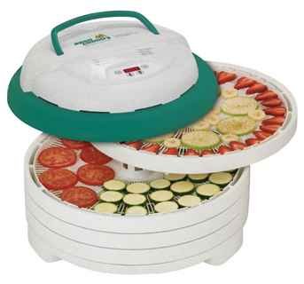 This dehydrator expands to 20 trays so you can dry large quantities all at once! 1000 watts of drying power means you can dry more, faster. Patented Converga-Flow� fan forces heated air up the exterior pressurized chamber, then horizontally across each individual tray, converging in the center, for fast, even and nutritious drying. No flavor mixing! No need for tray rotation. Fast, Powerful Fan! A quiet, 2,400-RPM motor mean faster, more nutritious drying. Four times faster than dryers which have no fan or motors. Adjustable Thermostat! Different foods need different temperature settings. The adjustable 90-160 degree F thermostat give you the flexibility to get the best results. New digital controls. Set precise temperature and drying time for consistent results No need for an external timer. Program a specific length of time and dehydrator turns off automatically. unit can also indicate length of time dehydrator is in use.