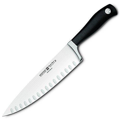 Perform any kitchen task from slicing to dicing and mincing without any hassle with the Wusthof Grand Prix II cook's knife. Constructed from high-carbon stainless steel, the blades of the Wusthof Grand Prix II line are laser tested and twice honed for long lasting durability and sharpness, and are stamped with the Wusthof logo. The stain resistant blade features a pointed tip that is perfect for maneuvering easily while cutting, and a hollow edge that prevents food from sticking. The blade, bolster, and tang are all forged from a single piece of stainless steel, giving added balance and strength. The ergonomically designed handle is made from black slip resistant plastic, making it easy to use wet or dry, and is comfortable in the hand. Best of all, this knife is backed by a manufacturer's lifetime warranty, and matches the rest of the Grand Prix II knife set.8" L