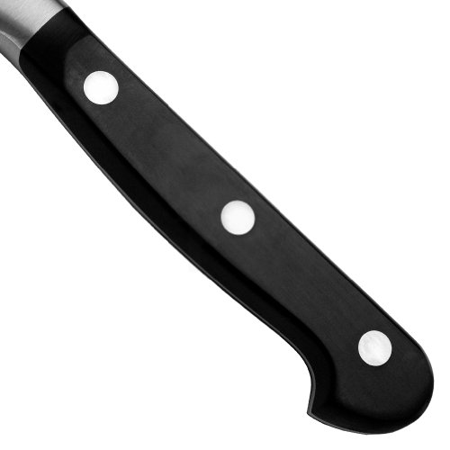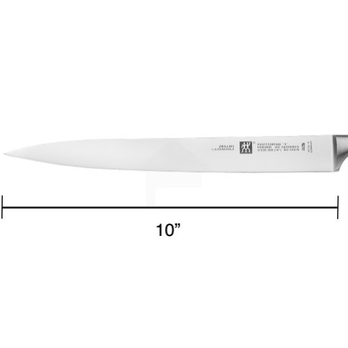 Classical styling and state-of-the-art technology in blade manufacturing combine to create the Twin Pro S series. Each blade uses the precision SIGMAFORGE construction and is made from the J.A. Henckels exclusive formula high carbon, no-stain steel that is precision-hand honed to stay sharper for longer, and have a more consistent blade angle. The steel is hardened using the patented Friodur ice hardening system for maximum no-stain properties and excellent blade strength because of the improved resistance to corrosion and pitting. The triple riveted Novodur handles lay on the fully visible tang, giving the knife proper balance and greater strength. Like a carving knife, slicing knives are made to cut through cooked meats of any kind, including roasts and poultry, but have a thinner blade for extra thin slicing. It's the perfect knife for slicing meat at your next holiday dinner and with it's hollow edge, will allow for even thinner slices for sandwiches. With over 275 years of experie...